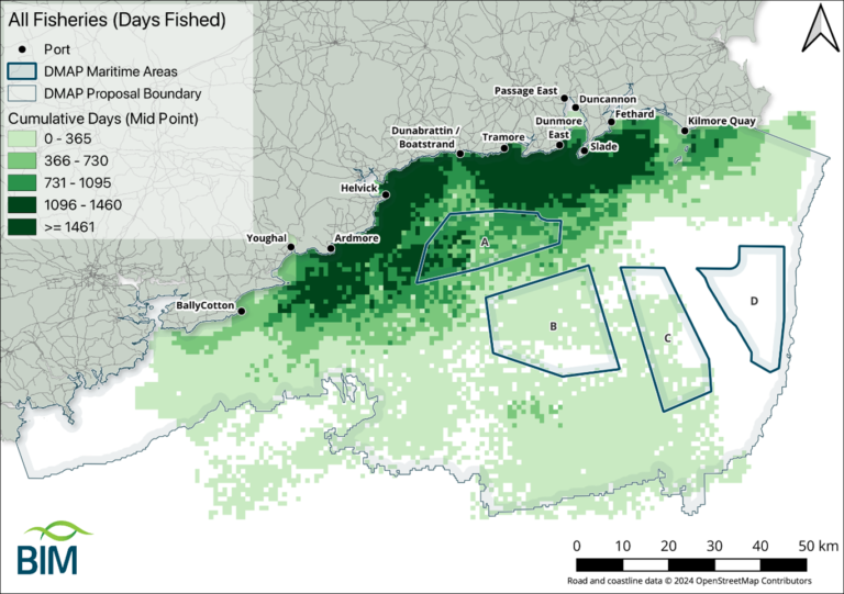 As new marine developments- such as Marine Protected Areas (MPAs) and offshore wind farms- emerge, BIM is actively developing applied technical solutions to address Marine Spatial Planning (MSP) challenges faced by the fishing industry. Currently BIM is engaged in two MSP projects.